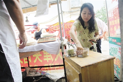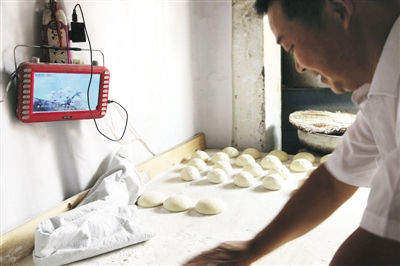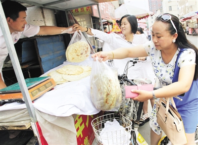 “老王,过来拿烧饼吧!全是刚出炉的,还冒热气呢!”徐建楼一边接电话,一边把称好的大烧饼递给一位老主顾,“祝福您大妈!您老吃好再来!”40多岁的徐建楼每迎来一位客人,都会送他们一句祝福的话,顾客听着高兴,他也乐呵呵的,小生意每天都在快乐中进行。