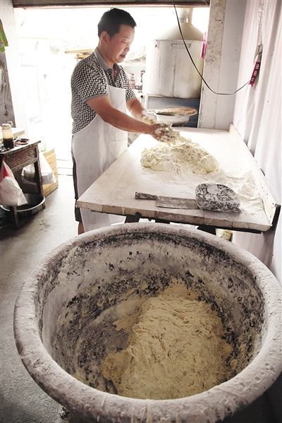从买面粉到和面、发酵、烧饼出炉每一个环节都很有讲究,都是马虎不得的。从和面到烧饼出炉一般需要1个多小时,这也要根据季节、天气状况而定。徐建楼打出的大烧饼味香纯正,与面粉、火候和不加任何添加剂都不无关系。不信,你瞧,当下许多生意人都抱怨生意难干的时候,徐建楼的大烧饼铺子依然红红火火,甚至供不应求。