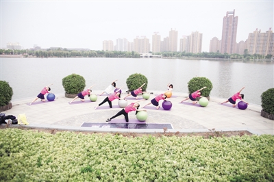 日前,百余名热爱生活的年轻人在东湖公园进行户外瑜伽表演,并在瑜伽教练的指导下分享眼下最热“炫腹”活动的心得。此次活动作为枣庄夏季疯狂嘉年华之全民炫腹的第一站,同时也是为了迎接首个联合国国际瑜伽日。 (记者 王龙飞 摄)