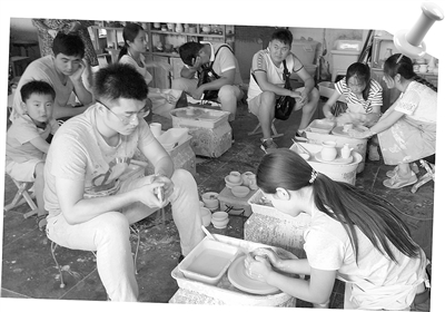 近日,台儿庄古城内新开的一家陶吧,吸引了众多的年轻游客前来一试身手。游客们在老师的指导下,亲手做出各种陶器,利用电窑烧制出成品,在手工制作中享受着休闲的快乐。