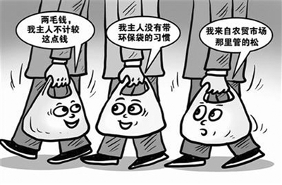 “商家为了招揽顾客,向顾客提供不合规格的塑料袋。由于部分消费者环保意识不强,自带购物袋的习惯也尚未形成,很难进行监管和约束。此外,众多的流动商贩、城乡结合部、偏远城镇、农村的农贸市场等都是‘三无’塑料袋的重灾区,很难进行管控。”该工作人员表示。 (记者 苏羽)