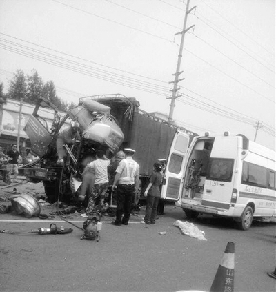27日中午12时40分左右,104国道滕州段新旧104国道交会处附近发生一起车祸。两辆半挂大货车发生追尾事故,后方车辆驾驶室严重受损,驾驶员受伤被困驾驶室内。事故发生后不久,消防、医护人员赶到现场进行救援。据现场工作人员透露,事故造成一人死亡。