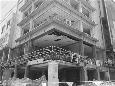 在施工楼房旁的一店铺老板说:“前两天下雨,雨水带着楼体上的一些小碎石都掉了下来。一些市民早上在这买早点的时候,楼房上面的瓷砖、玻璃很容易就掉到这里,希望有关部门能够管理,防止危险发生。”