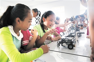 “机器人还能说话跳舞!科技发展太快了……”7月4日,市中区流动科技馆迎来开馆首批青少年前来参观学习。据了解,这次展览使广大的枣庄市民尤其是青少年在关注科技的同时,可以体验互动展品,学习更多的科技知识,掌握更多的科技常识,了解未来科技的发展方向。 (记者 王震 摄)