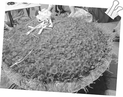 14日晚,在滕州市大同路某花店,工作人员正忙着插花,巨大的花束引来不少市民围观拍照。此束玫瑰花共999朵,是位小伙送给女友表达爱意的。“这么大的一束玫瑰花,我还是第一次亲眼看到,希望有情人终成眷属。”路过的市民说道。 (记者 姚付林 摄)