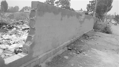 晚报讯 (记者 王龙飞 摄影报道)4日,本报以《墙内大坑成了垃圾场》为题,报道了市中区蓝天驾校南的道路东面有一处大坑填满垃圾的问题。报道中曾提到在大坑的边缘有一堆放垃圾的平台,平台旁原本有一道用空心砖砌成的墙,几乎将整个大坑挡住。在空心墙的内侧,可见许多人体排泄物。由于墙内侧距大坑只有不到一米的距离,人在此处活动将十分危险。