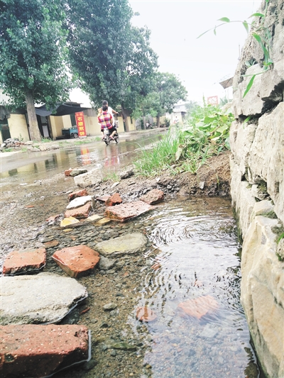 “长久下去真不是个办法,马路长时间在水中浸泡,个别地方已经出现破损。即使没有破损的地方也都长了青苔,路面也变滑了,经常有骑车人摔倒在水里。”附近村民说,“现在是夏天,附近的路面全是水,道路两侧的温度明显比其它地方低了不少,这也许是路面积水的唯一好处,如果长此以往下去,到了冬天,路面结冰就麻烦了。”