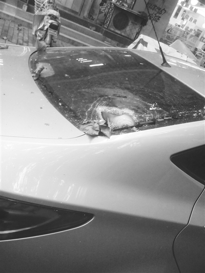 晚报讯 (记者 李佼 摄影报道)8月5日,市中区一市民拨打本报热线反映,当天下午,商城北面的胜利东路一处行道树上突然落下一截树枝,将停在路边的一辆私家车后挡风玻璃砸破,幸好未造成人员受伤。