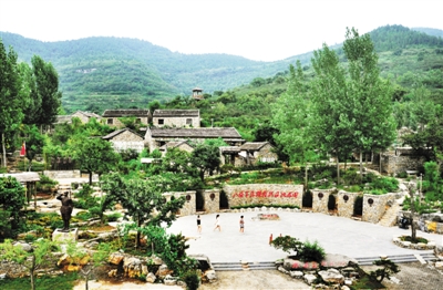 九顶莲花山环抱群山,处处满眼绿色,翠竹苍柏簇拥的亭台,路旁雕像伏坡,丝网吊桥横架,四棱边炮楼掩映在绿树花草之中。让人身临其中,饱览山光水色,领略风土人情,追溯历史遗迹缘由,感叹红色的神奇故事。如果说一期工程的启动,是带有游园性质的场所,接受红色教育基地的话,那么,启动的二期工程,则依托抗战时期的山村风貌,以山区人民光荣革命传历史为背景,以抗日文化、民俗文化为内容,充分展示抱犊崮抗日革命根据地的历史场景。