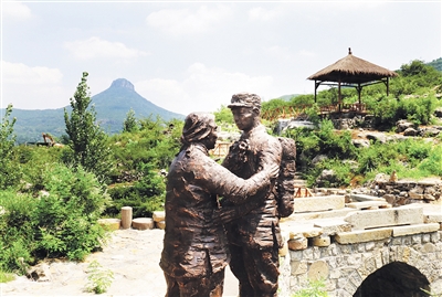 纪念园无雕不成园——三组人物形象雕塑,把纪念园点缀得庄严肃穆,形成强烈的视角冲击力和鼓舞斗志激发情感的浓厚感染力。“送子参军”、“夫妇推车支前”、“红嫂”三组雕塑形象,都是以当地抗战时期发生的真人真事为题材而创造的——石虎峪的一位老乡先把两位儿子送去参军,结果都牺牲了,他又把小儿子送上了前线;土山的一位“红嫂”,冒着被敌人杀头的危险,养育八路军干部的儿女;白龙湾村更是有夫妇推独轮车支前送粮、五姐妹压碾推嚰烙煎饼冒死支前的感人故事。