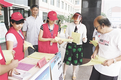 近日,市中区文化路街道反邪教办公室工作人员携手文化路街道青年志愿者代表,来到市立医院开展反邪教宣传教育活动。工作人员向来往群众发放反邪教警示教育宣传材料,并向他们介绍了日常防范邪教的方法。 (记者 刘一单 摄)