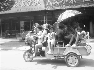 近日,在市中区建设路与君山路路口北侧,一辆由南向北行驶的电动三轮车上坐了8个人,其中包括几名未成年人。由于人数较多,电动车行驶得相当缓慢。(记者 李佼 摄)