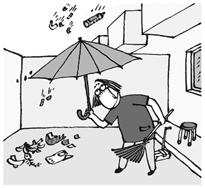 上海的沈阿姨说:“楼上扔塑料袋、饮料瓶、烟蒂、瓜皮果壳下来,已见怪不怪了。但让人吃不消的是,居然还有卫生巾、避孕套、鱼鳞鱼肚肠等污秽之物,实在太恶心了,我现在去打扫天井,不管是不是下雨,都要撑着伞,以免被砸中。”(8月17日《新闻晨报》)