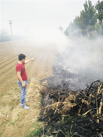 18日上午,记者途经滕州市大坞镇凫山路和福村附近时,看到远处一片烟雾腾腾,浓烟四处弥漫。走近后发现,原来是附近田地边的一堆秸秆正在燃烧,边上的许多绿植已经被烤焦。浓烟飘到道路上,影响道路通行,存在安全隐患。