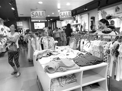 据某服装店的营业员透露,夏季服装打折卖,除了促销和推广品牌的目的外,也是为给接下来上市的秋装“让路”,由于打折力度大,此类商品的销量上升了30%-40%,此时选购夏装比较实惠。记者注意到,商场里漫天都打着醒目的折扣招牌,唯独新上市的秋装柜台前少有人驻足。“秋季服装不享受此折扣”的标识提醒消费者注意甄别。据介绍,到9月初秋装将全面上市。 (记者 苏羽 文/图)