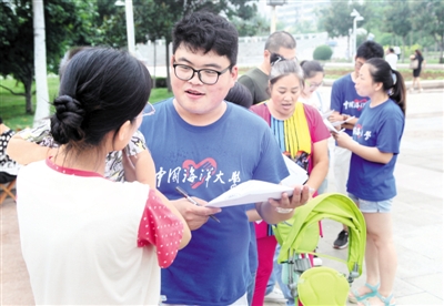 8月19日,毕业于枣庄市第十五中学的刘柱和6名中国海洋大学的同学在我市街头进行生态环境问题调查。他们回去后将对调查结果进行整理,并将继续关注我市生态环境。
