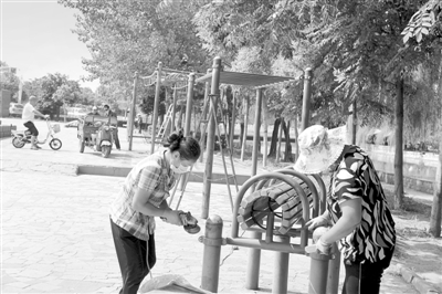 薛城区沿河健身公园的健身器材由于日晒雨淋,锈迹斑斑,影响了正常使用和美观。近日,薛城区请来专业技术人员对健身器材进行保养维修,使沿河健身公园的健身器材焕然一新。 (记者 焦兴田 摄)