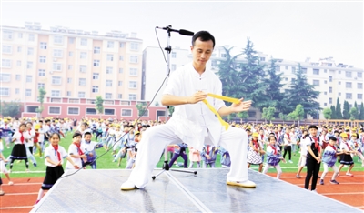 9月21日,数字太极发明人、武当龙门派传人、太极启蒙教研专家姜仁丰先生,走进峄城区坛山中心小学向孩子们传授数字太极操。他以太极拳十三式中的基本动作为基础,创立出了数字太极操。