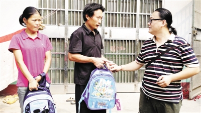 晚报讯 (记者 孔浩 摄影报道)7月份本报报道了市中区齐村镇谷山村32岁的视力残疾人李玉柱家庭困难的消息后,引起很多市民关注。近日,玉华书法培训学校校长房东辉带着月饼、学习用品及慰问金到李玉柱家中看望慰问。