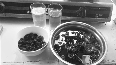 “之前买来的木耳全部都是黑色的,泡发之后就变成了浅褐色的,正常的木耳泡过之后,水应该是清澈的,可是我买来的东北黑木耳泡完之后水竟然成了浑浊的褐色。”陈先生说,“这东北黑木耳肯定存在问题,至于是否是染过颜色我们不得而知。”