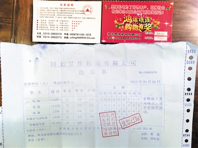 据丁先生介绍,他在某购物中心买完东西,准备开车离开时,发现脚下有一个塑料卡包,卡包里有一张出货单及4张相同图面的卡片,卡片正面标有“昱烽机电为了回馈客户,回馈社会特此举办大型公益福利抽奖活动”的字样,右下角标有刮奖区、密码区。根据背面标明的兑奖方式,丁先生将4张卡片一一刮开,其中一张竟然中了二等奖26万元。