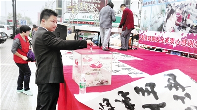 在现场记者注意到,舞台上的捐款箱里装满了爱心款。据介绍,这些爱心捐款,有的是路过市民自觉捐赠的,有的是从网上看到组织捐款活动专门从四面八方赶来的,还有现场的书画家义卖所得的款项。“本次活动共募集善款一万多元,所有这些爱心款都是好心人对蒋晓鹏的爱,是对他的希望,对他的鼓励。”含笑女士说道。