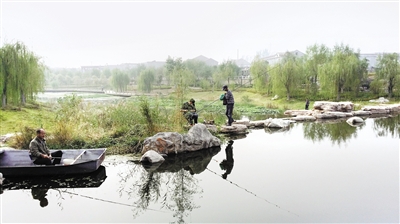 市中区西沙河近年来经过大力整治,变得水清鱼肥环境美,吸引众多垂钓爱好者前来钓鱼。在西沙河沿岸有写有“禁止钓鱼”的标识牌,但钓鱼爱好者们依然置若罔闻。 (记者 孔浩 摄)