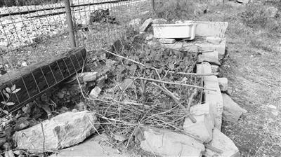继续向北走去,市民所反映的绿化带种菜、挖坑倾倒建筑垃圾等现象便一一呈现在眼前,其中不乏挂在铁道隔离网上的破损篷布。