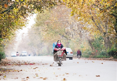 眼下已是十一月末,高温仍维持在15℃左右。路两旁的行道树刚刚开始落叶,行人踩着落叶行走,别有一番景色。