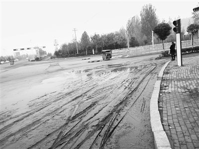 记者来到该路口发现,当日无雨,但该路口仍有大量积水,靠近枣曹路的非机动车道上,路面积存大量淤泥,有车辆经过时,溅起的淤泥会飞出很远。偶尔有骑车经过的市民,也都纷纷绕行。“不离远点真不行,会被溅到身上泥。昨天刚下完雨,我路过这时已经很小心了,还是被飞驰而过的汽车溅了一身泥。”市民宋女士如是说。