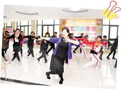 11月17日,在巨山街道四季菁华社区的小广场上,100余位居民跟着市工人文化宫的6位老师学习舞蹈。