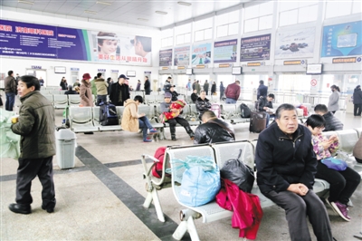 昨日凌晨,我市迎来今冬初雪。由于雪量较大,枣庄长途客运站当日上午停运,部分乘客滞留车站候车厅。 (记者 王震 摄)