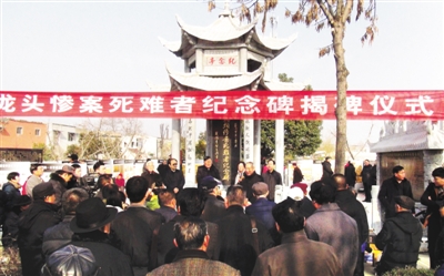晚报讯 (记者 孔浩)13日是第二个“南京大屠杀死难者国家公祭日”。12日,“龙头惨案死难者纪念碑”揭碑仪式在市中区东沙河龙头桥畔举行,同时还举行了“勿忘国耻、圆梦中华”的日本侵华罪证史料图片展。