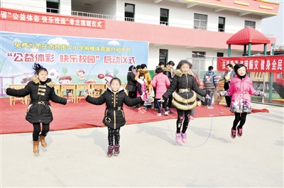 简短的仪式后,整个校园顿时充满欢声笑语,有的孩子踢毽子,有的跳绳,还有的孩子走到琳琅满目的体育器材前,摸摸篮球架、乒乓球台,看看篮球、羽毛球,一副好奇的模样。“我们学校没有开设体育课,而我特别喜欢打篮球,家里又买不起体育器材,现在有人给我们送来了各种各样的体育器材,我和几个小伙伴已经约好了放学就去练习打篮球。”四年级的学生张小光说,“我哥哥就是在我们这里毕业的,现在他已是北京科技大学大三的学生了,他也很喜欢打篮球。我要向他学习,以后好好学习将来也要帮助别人,报答社会。”