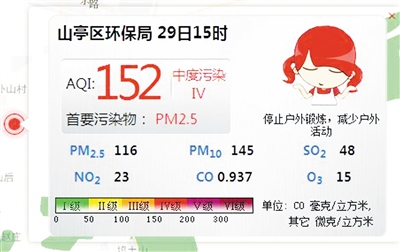 自进入冬季一来,我市便饱受雾霾的困扰,市气象台也多次发布了雾霾黄色预警信息。而到了本月中下旬,这种情况愈发严重起来,不仅多日内城区空气质量日平均指数(AQI)超过200,空气质量达到重度污染水平,而且根据山东省城市环境空气质量信息发布的消息,在24日的15时我市AQI更是达到了500的恐怖数字,趋近“爆表”。同时空气中的污染物PM2.5的数值达到了440微克/立方米,PM10达到774微克/立方米。其严重程度可见一斑。