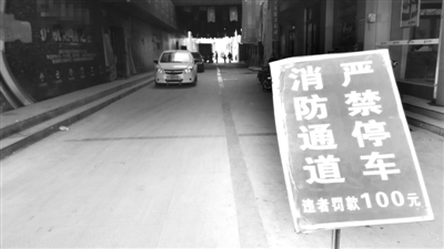 近日,枣庄西站附近一家商场的消防通道被几辆私家车当成了停车场。记者在现场看到,尽管消防通道门口醒目地竖起了“消防通道,严禁停车,违者罚款500元”的警示牌,这些私家车车主依旧对此警示牌视而不见,公然将车停驻消防通道。 (记者 董艳 摄)
