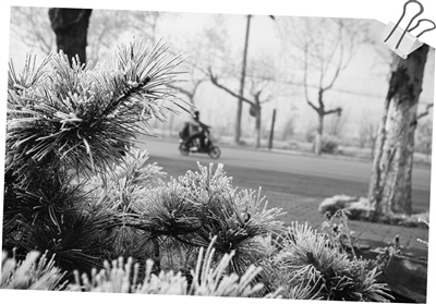 昨日,气温较前几天有明显降低,市中区解放南路路旁的一株松树上挂满了霜。