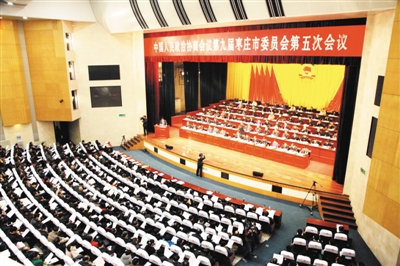昨日上午,政协第九届枣庄市委员会第五次会议在新城会展中心开幕。 (记者 孙明春 摄)