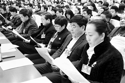 政协委员们认真听取政协工作报告。 (记者 孙明春 摄)