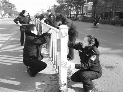 15日,市中区部分街道联合公安民警和执法队队员,对青檀路、光明路沿线的道路护栏进行了集中清洗。