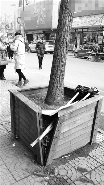 晚报讯 (记者 李帅 摄影报道)“吉品街两侧行道树下花坛有的已经裂开,有的缺了一面,还有的被火给‘毁容’,大多数花坛已经面目全非,成了垃圾箱。原本应该起到美化环境的作用,现在可好,不仅不美化环境反而极大地影响了城市环境。”近日,市民王先生在电话中感叹道。