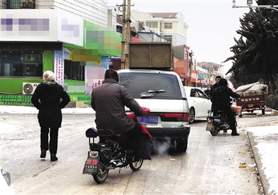 1月23日下午,在市中区中兴路上,一辆商务车“顶”着一个橱子,在结了冰的路面上行驶。橱子因为没被固定,在车顶上摇摇晃晃,很多行人不禁为其捏了一把汗。 (记者 孔浩 摄)