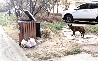晚报讯 (记者 李帅 摄影报道)“晚饭后下楼散步的时候顺带把家里的垃圾带到楼下,往垃圾箱里扔垃圾时,根本没注意垃圾箱周围有几只流浪狗在翻找食物,当我把垃圾扔进去时,这些流浪狗突然跑开,着实把我吓得不轻。最近一段时间已经遇到好几次了,而且近两天白天也能看到几只流浪狗在小区垃圾箱周围翻找食物。”近日,家住市中区的周女士被小区里成群结队的流浪狗吓得不轻。