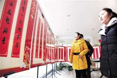 昨日,在市图书馆“迎新春楹联展”上,工作人员从国家图书馆藏楹联精品中采选出了一批具有代表性的作品。此次楹联展以赏析传统佳联与展示反映当代小康生活创作联为主,介绍楹联起源、特点和文化内涵,共制作了40余块展牌。 (记者 孙慧英 摄)