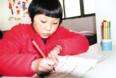 小思芹在自己的房间里写字,非常想回到学校学习。