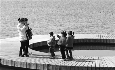 正月初十,阳光明媚,气温适宜。不少市民带着孩子来到市中区东湖公园游玩拍照。 (记者 李帅 摄)