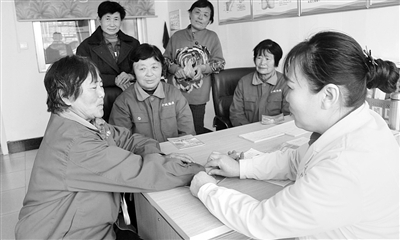 4月6日,我市学雷锋志愿者联合会滕州矿山医院服务队的医务人员为荆河街道120名环卫工免费做内科、妇科等26项身体健康检查。 (特约记者 侯志龙 摄)
