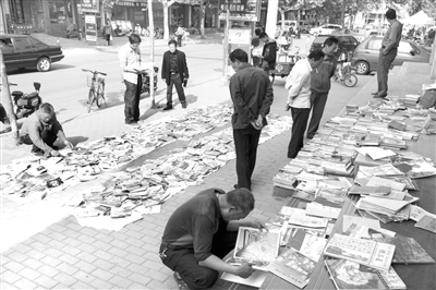 近日,市中区胜利路附近有市民在旧书摊“淘书”。在这里能买到价格便宜或书店里没有的书。也有市民质疑,在人行道摆摊是否妥当?