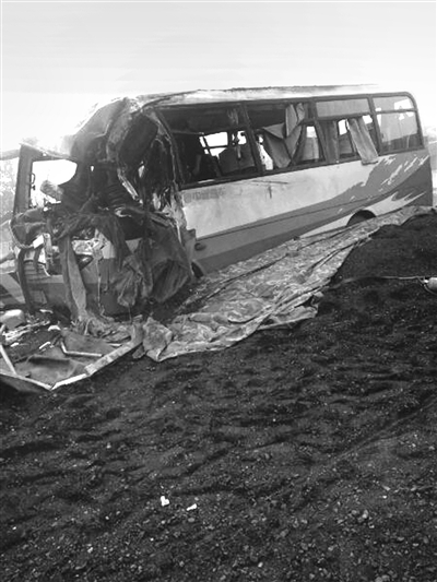 事故发生后,半挂车侧翻,车轮与车身脱离,车上满载的煤倾倒一地。客车严重变形,客车上多名乘客受伤。