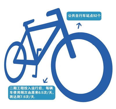 据悉,滕州公共自行车二期工程涉及的新建站点与居民区、客运站、公交站点、商贸网点、公共场所衔接,更大限度地方便了市民对公共自行车的使用,此次共增加站点45个,加上一期的47个,城区目前拥有公共自行车站点92个,滕州新投放了1000辆通体色彩为宝石蓝的公共自行车,基本实现了区域全覆盖。为解决公共自行车“无车可借、无桩可还”的难题,滕州市重新对站点进行了升级改造,施划标线,扩充车位。